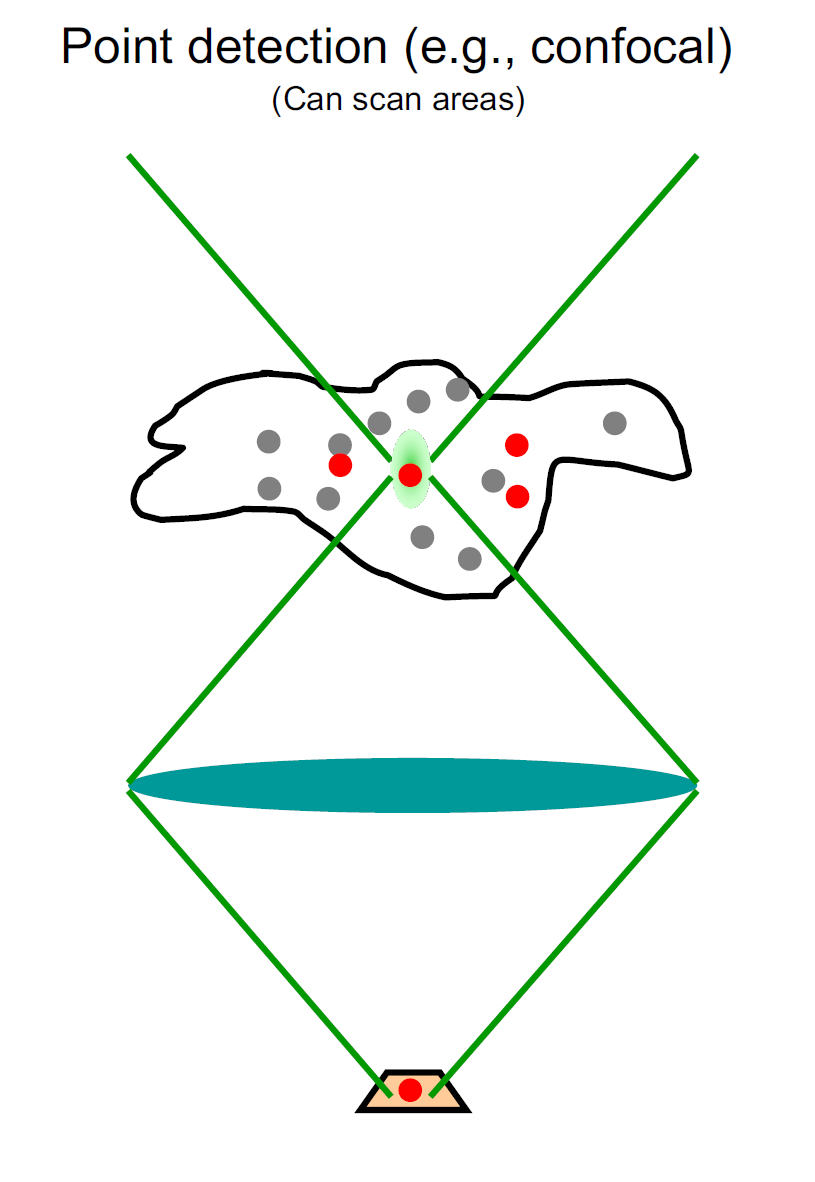 Use confocal optics to only excite a very small region. Then scan over whole area of interest.