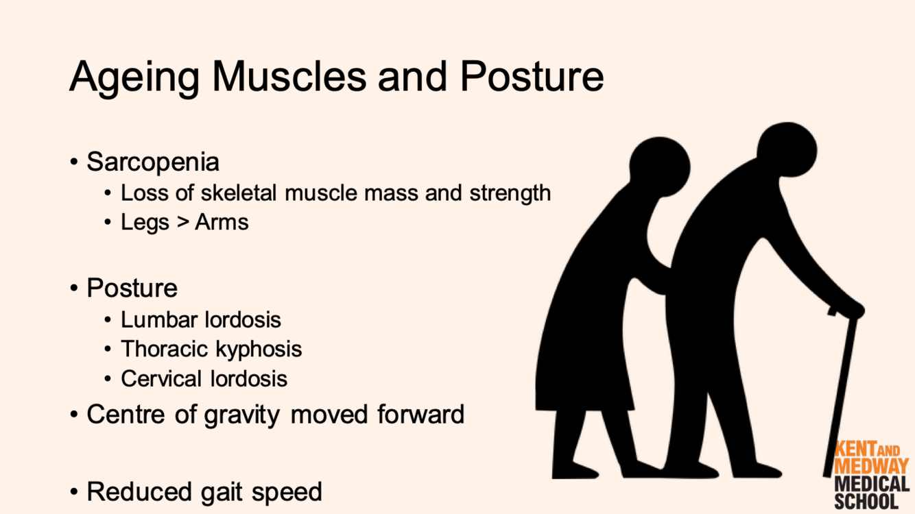 How can changes to posture in older age result in an inc risk of falls?