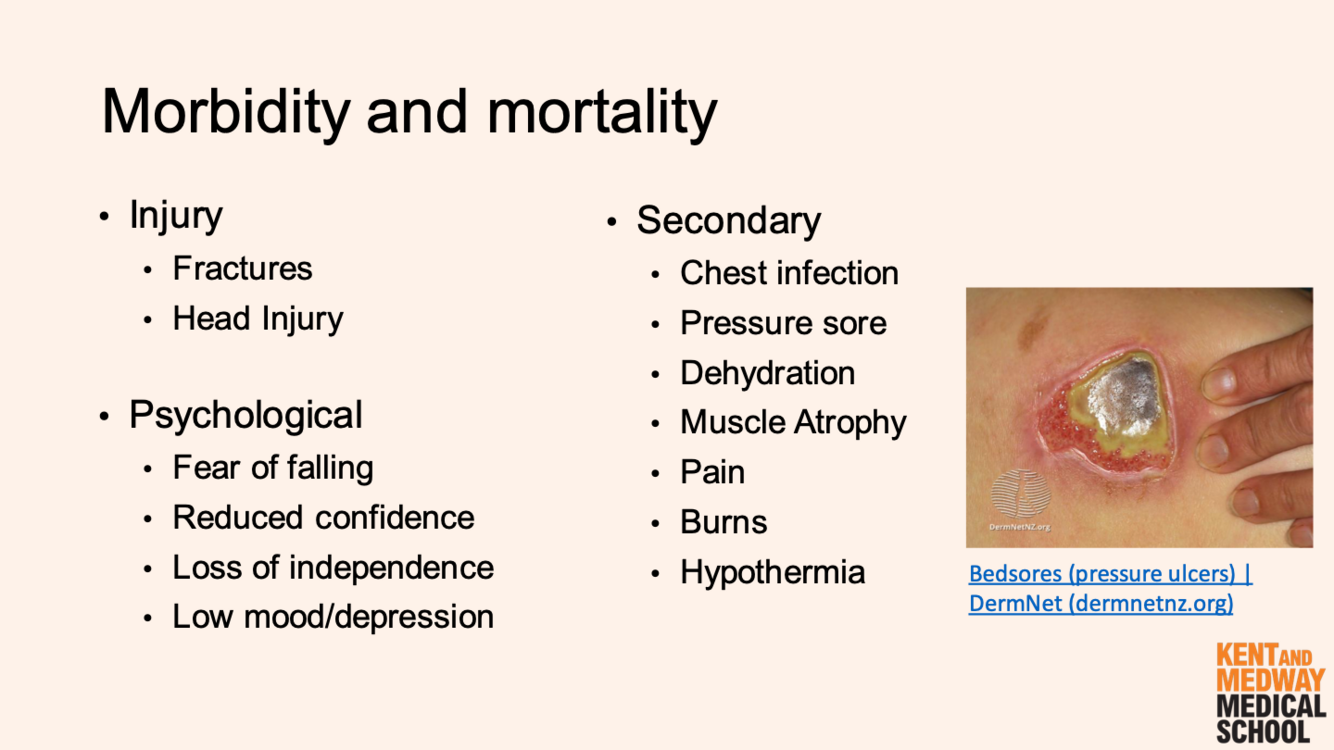 What are the possible morbidity and mortality risks associated with falls?