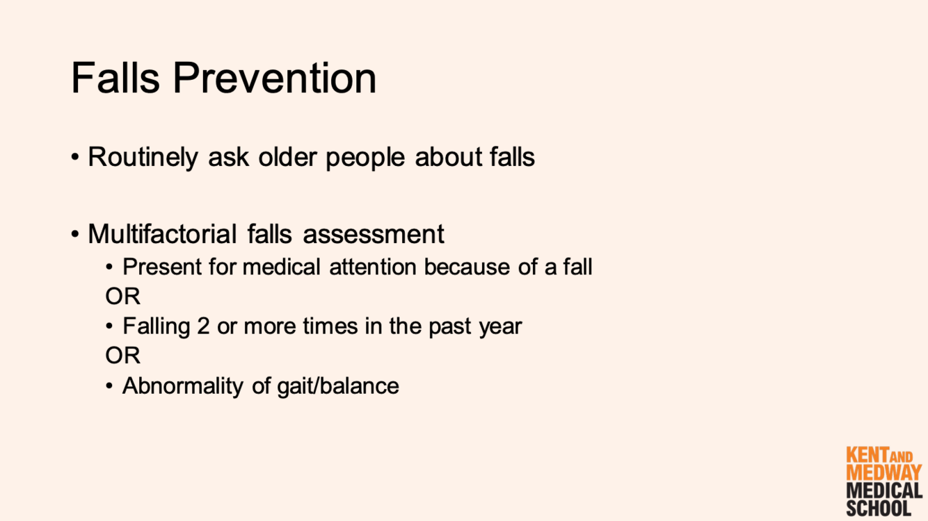 Anyone presenting for medical attention because of a fall