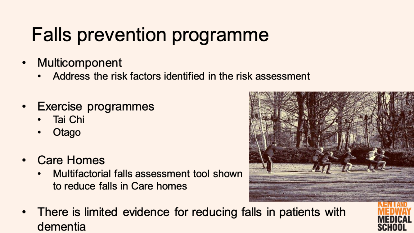Which exercise programmes are good for Ps with fall risk factors?