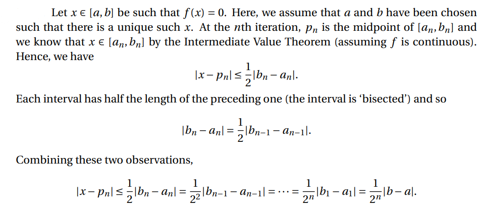 Describe the proof of the error bound on the bisection method