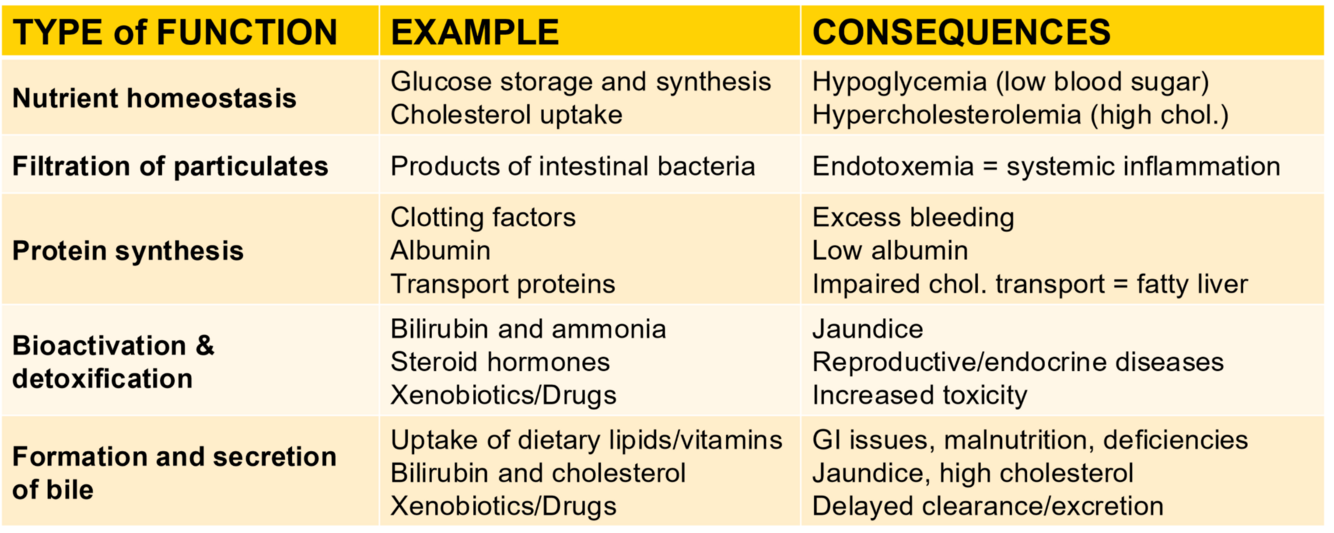 -ALL major functions of the liver can be affected by exposure to toxicants