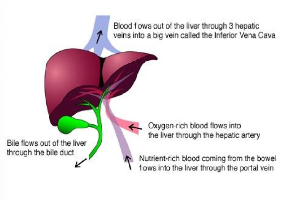 -may contain 10-15% of blood volume (circulation in the live is unlike that seen in any other organ)