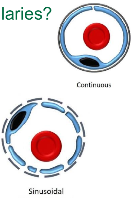 they are lined by “holey” endothelial cells->allows unimpeded flow of sinusoidal blood into space of Disse