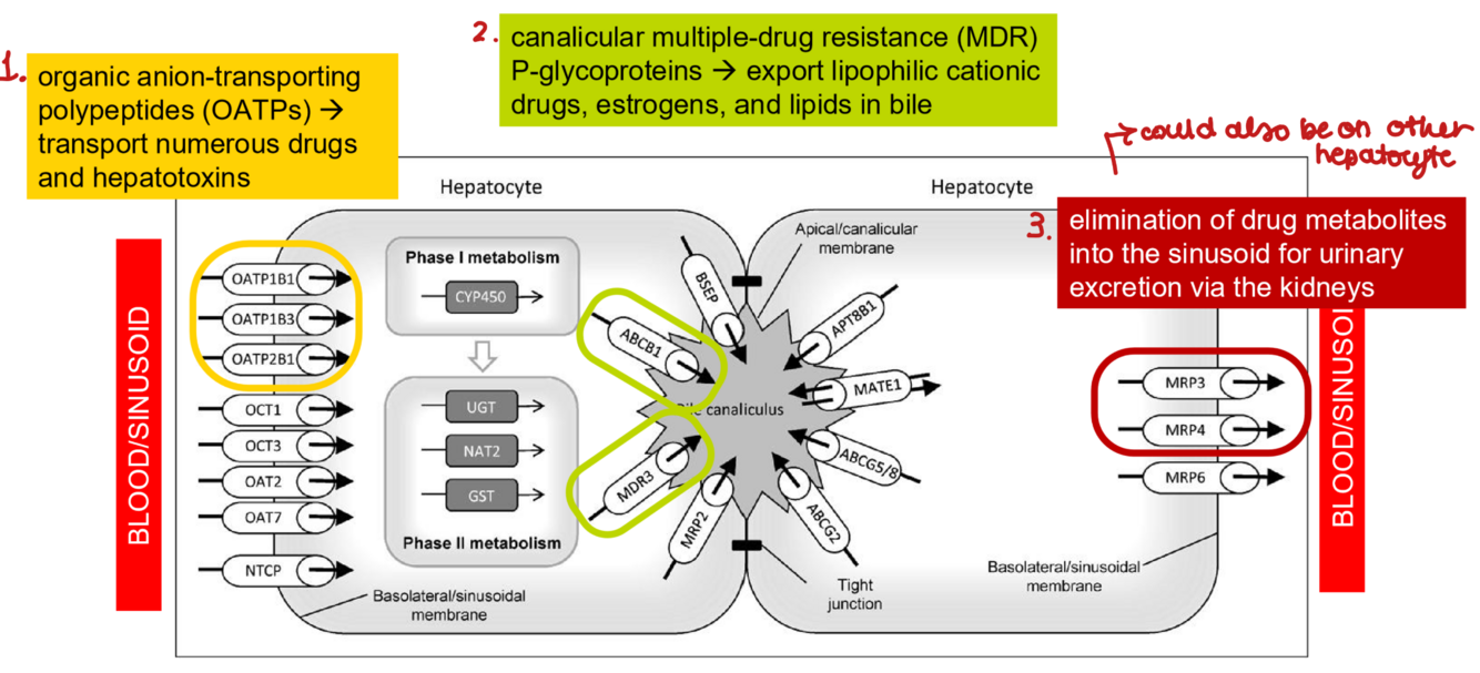 3. efflux elimination of drug metabolites into the sinusoidal for urinary excretion via the kidneys