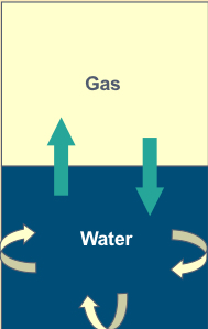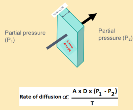 Amount of gas dissolved (mmol/L): Partial pressure (KPa) x Solubility coefficient of gas (depends on temp)