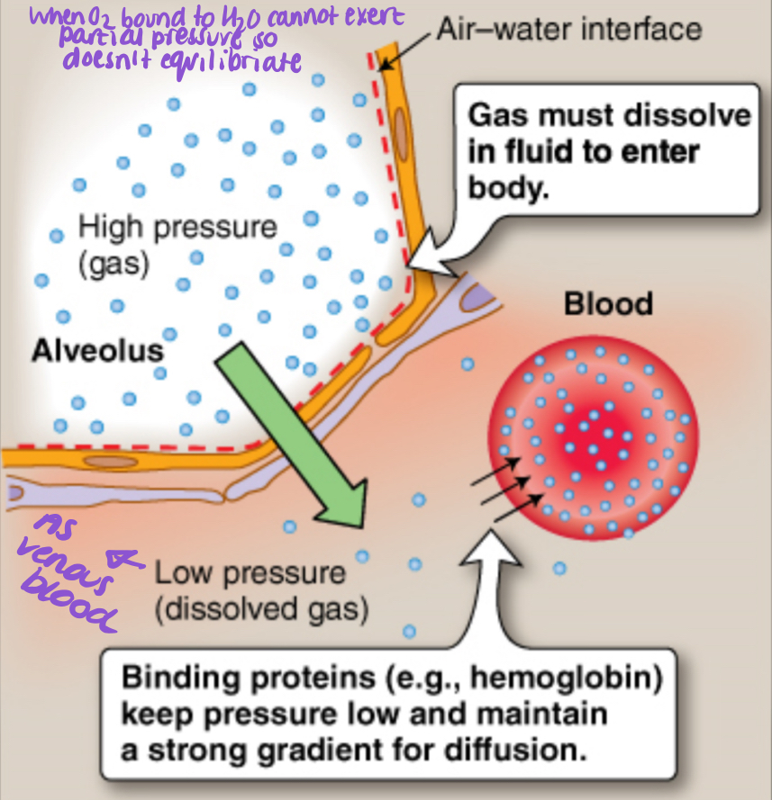 What is the relation of gases in liquid and gases in gas (e.g at the alveolar fluid interface)