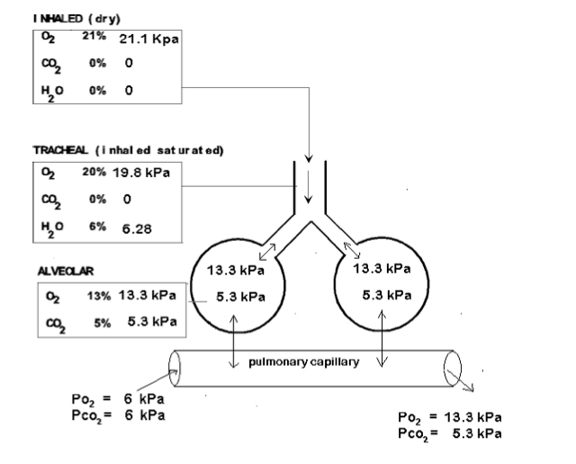 Because when air enters the airways it becomes warmed and moistened so water vapour is added, which is 6.28KPa, need to subtract this from 101KPa