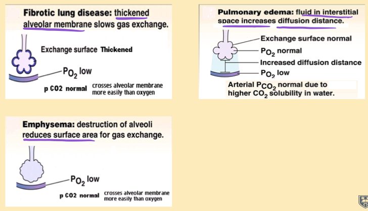 - pCO2 not usually affected as it diffuses 21 times faster than O2 as more soluble in water. Only falls in late stage of disease
