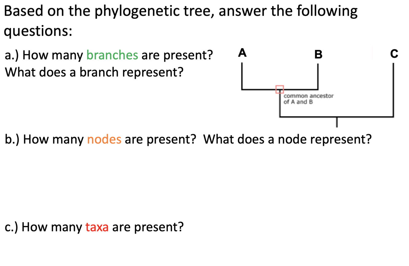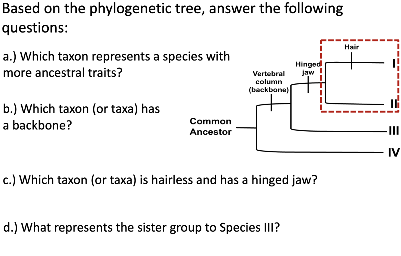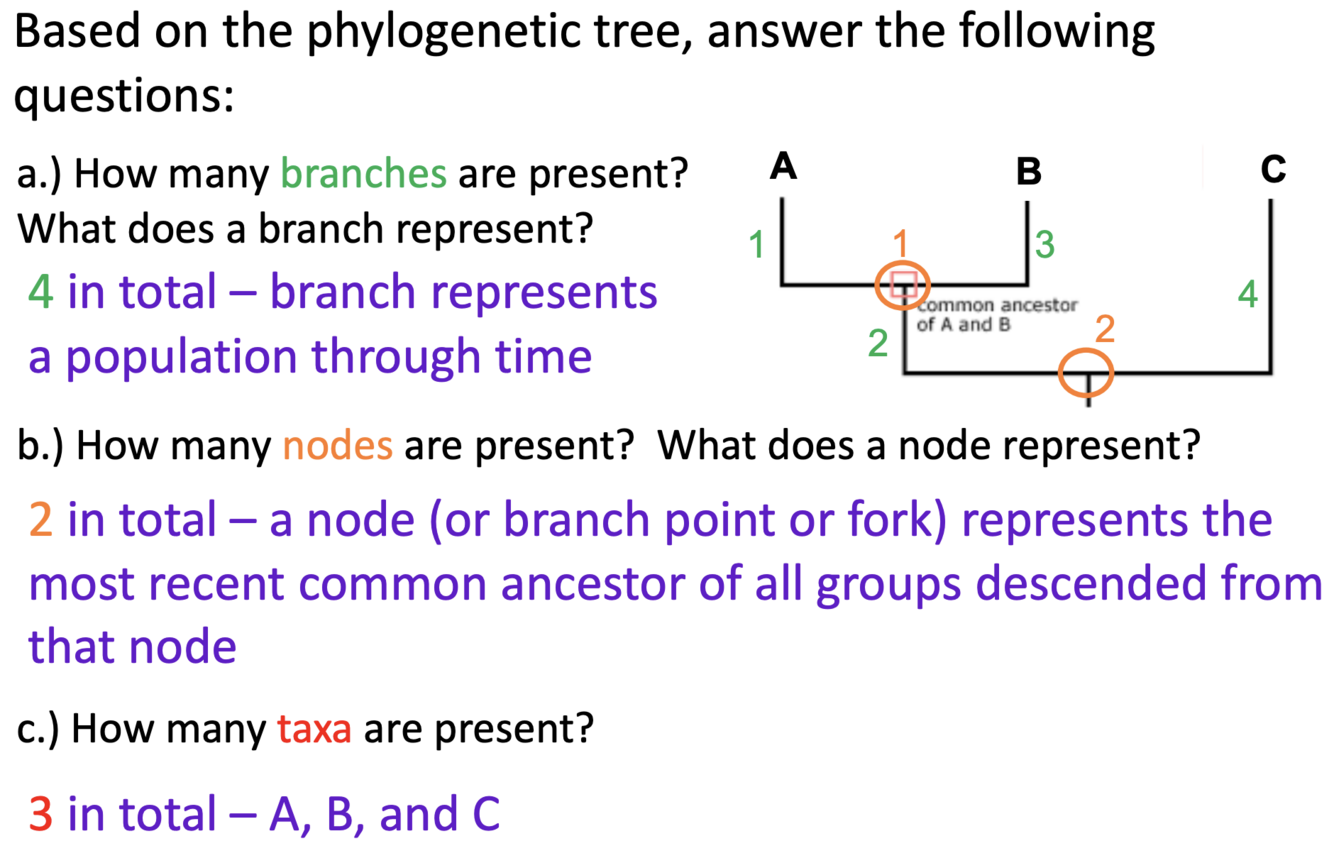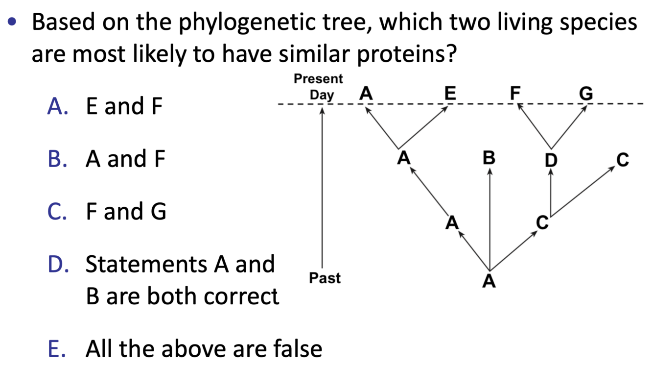 In a phylogenetic tree, the relatedness of two groups has a specific meaning: