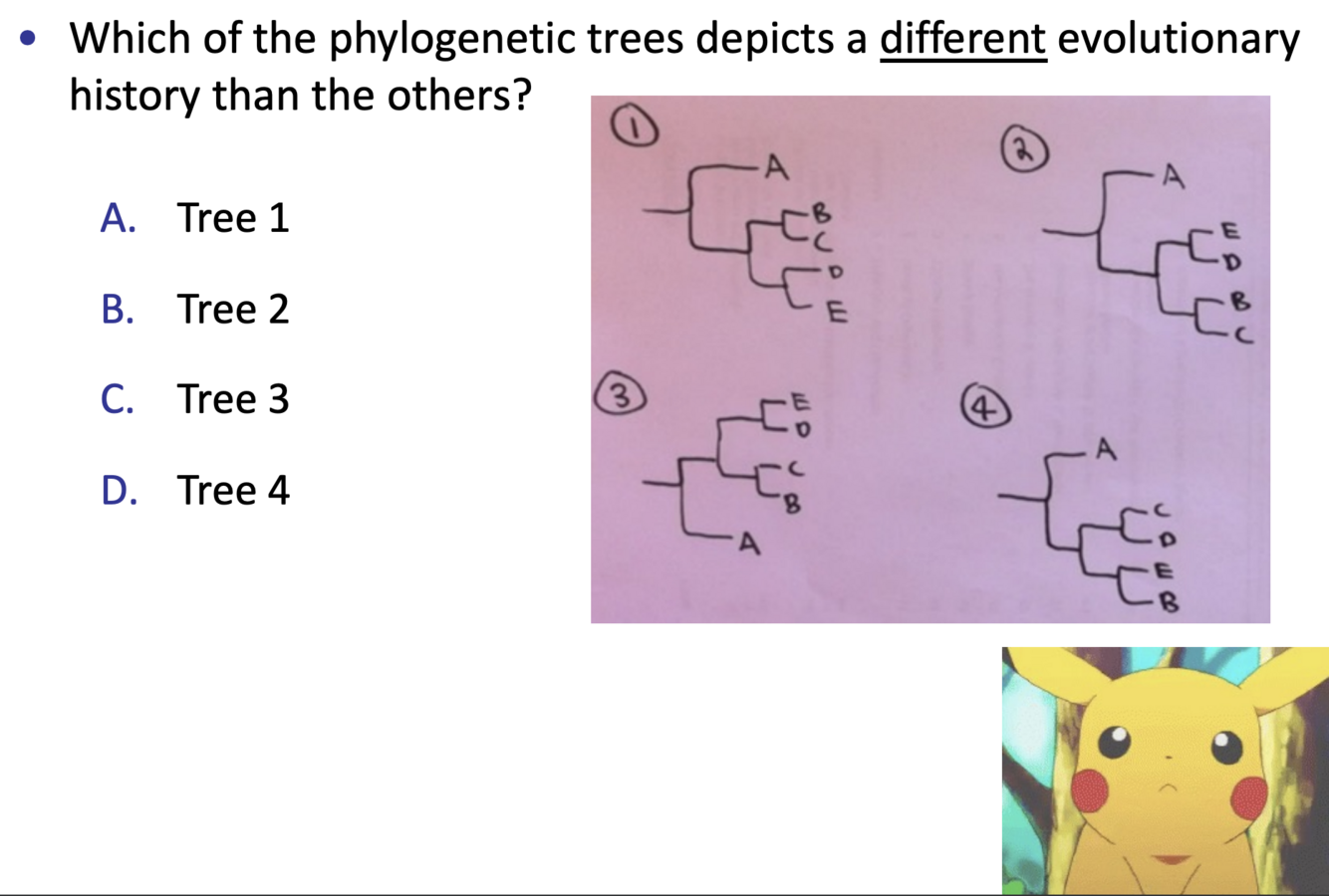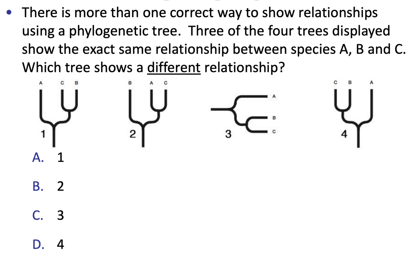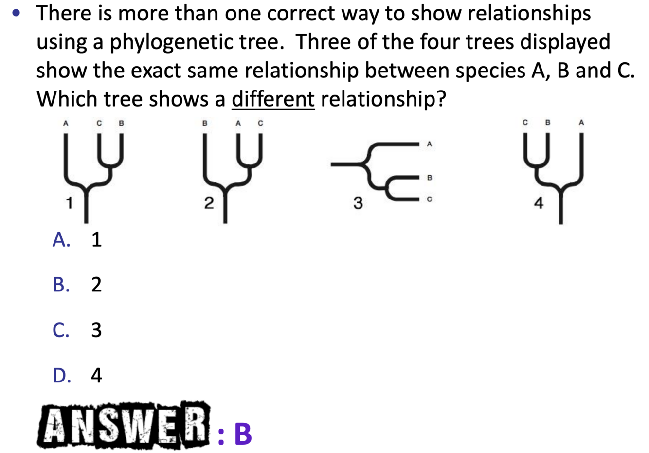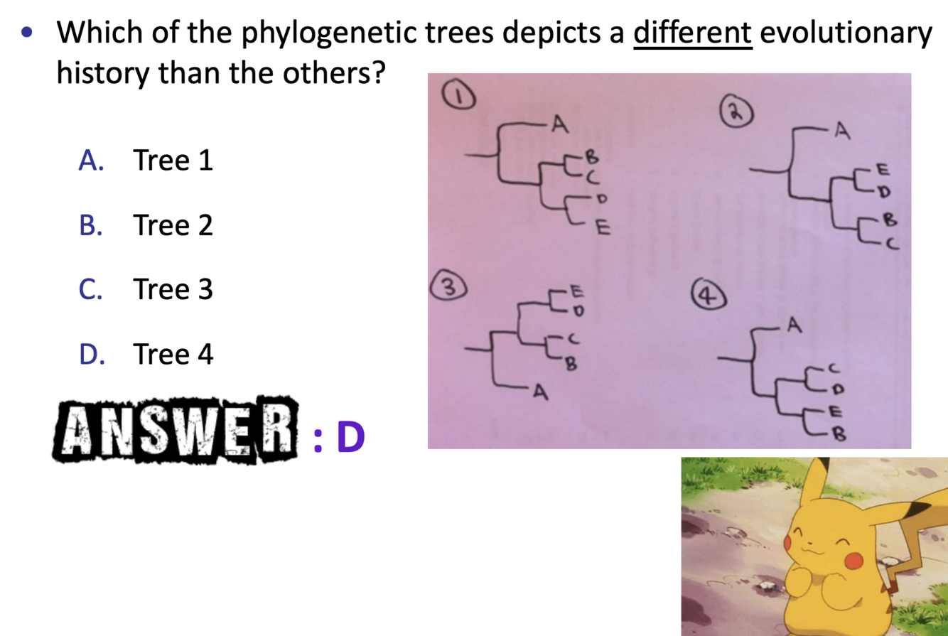 In a phylogenetic tree, the relatedness of two groups has a specific meaning: