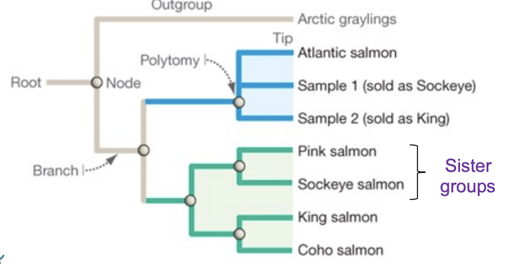 Sister groups (or sister taxa) share an immediate common ancestor at a node where their branches meet