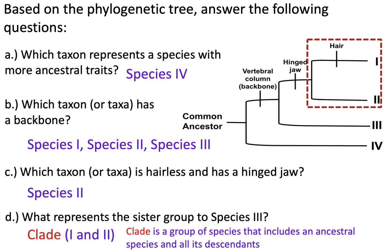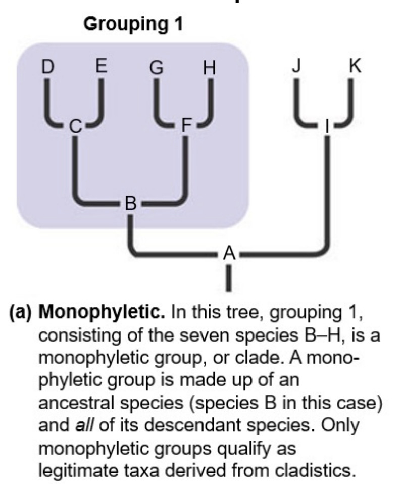 A valid clade is monophyletic, signifying that it consists of the ancestor species and all its descendants