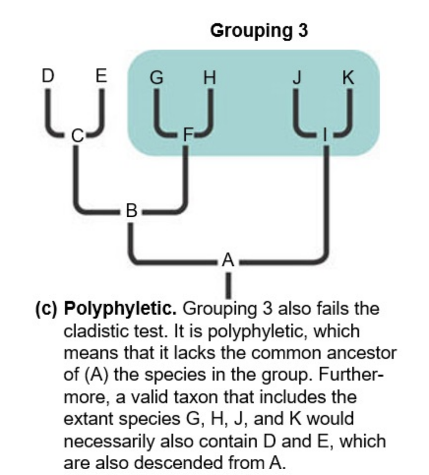 A polyphyletic grouping consists of various species that lack a common ancestor