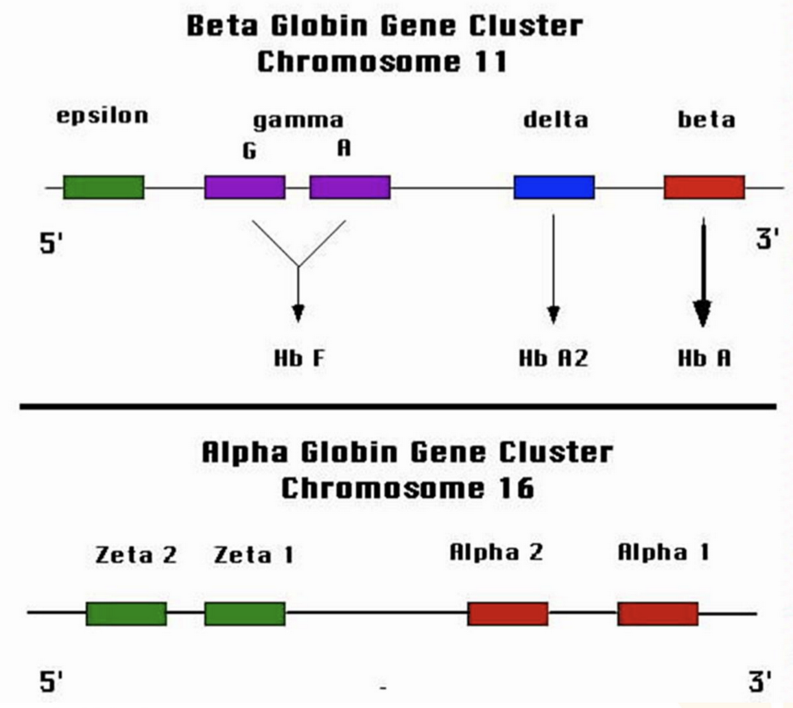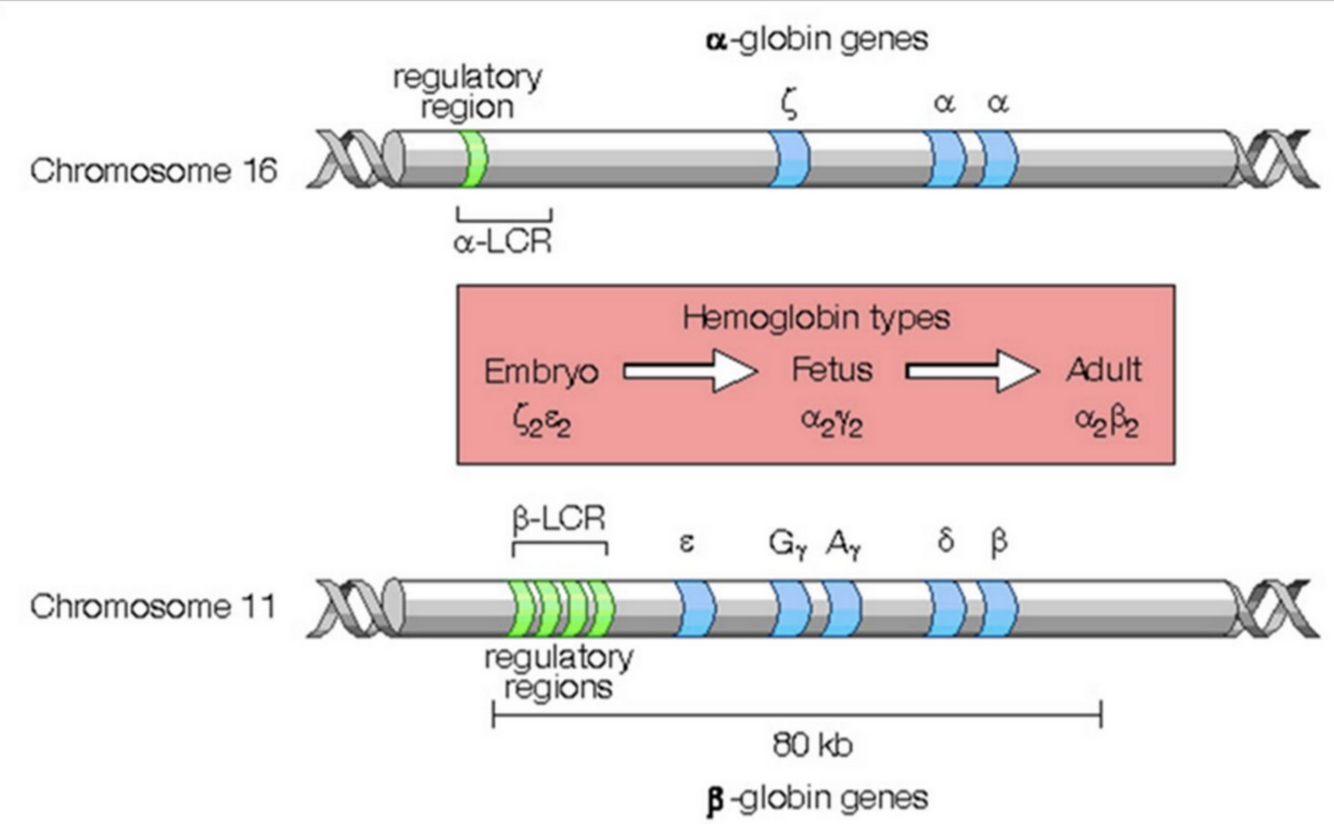 *Non-α chains: β (adult), δ (adult), γ (fetal), and ε