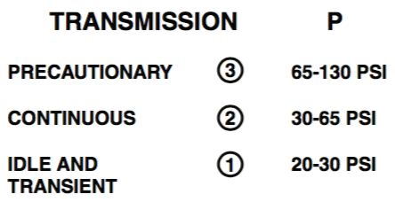 XMSN Oil Pressure Limits