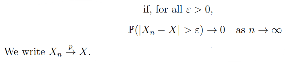 What does it mean for the sequence of random variables X1, X2, . . . converges in probability to X as n → ∞