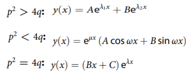 What are the different forms of the answer to solving a homogenous linear, second-order ODE