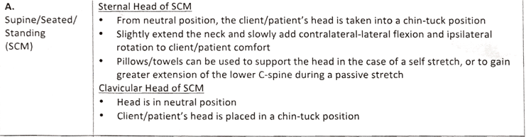 How is passive and/or self stretching accomplished for each head of Sternocleidomastoid?