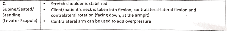 How is passive and/or self stretching accomplished for Levator Scapula?
