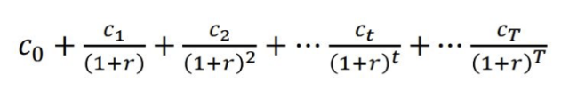 y₀ + y₁/(1+r) + y₂/(1+r)² + … + yₜ/(1+r)ᵗ + … + yₜ/(1+r)ᵀ