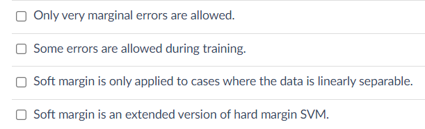 Which of the following descriptions are true about ‘soft margin’ for SVM?