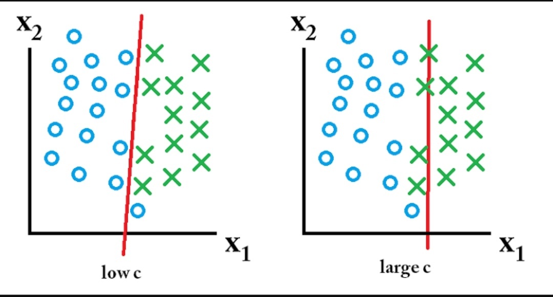 The choice of C affects how much training error is allowed by SVM. A large value of C leads to a smaller margin given that hyperplane minimises the training errors. A small C parameter looks for a larger margin which will result in more misclassifications.