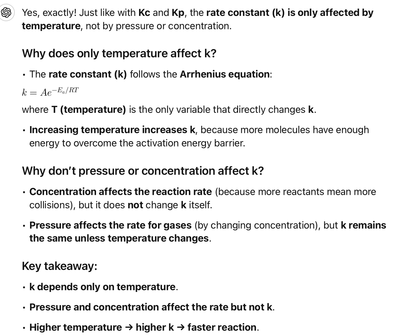 Oddly worded question but if the value of K is larger then what is the effect on the rate of reaction.