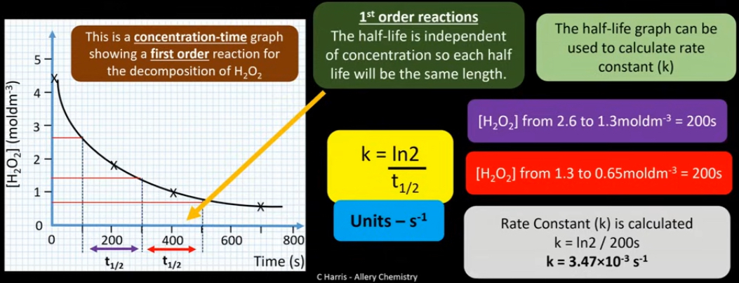 to the concentrations of the reactants. For a first order reaction, this can be determined using