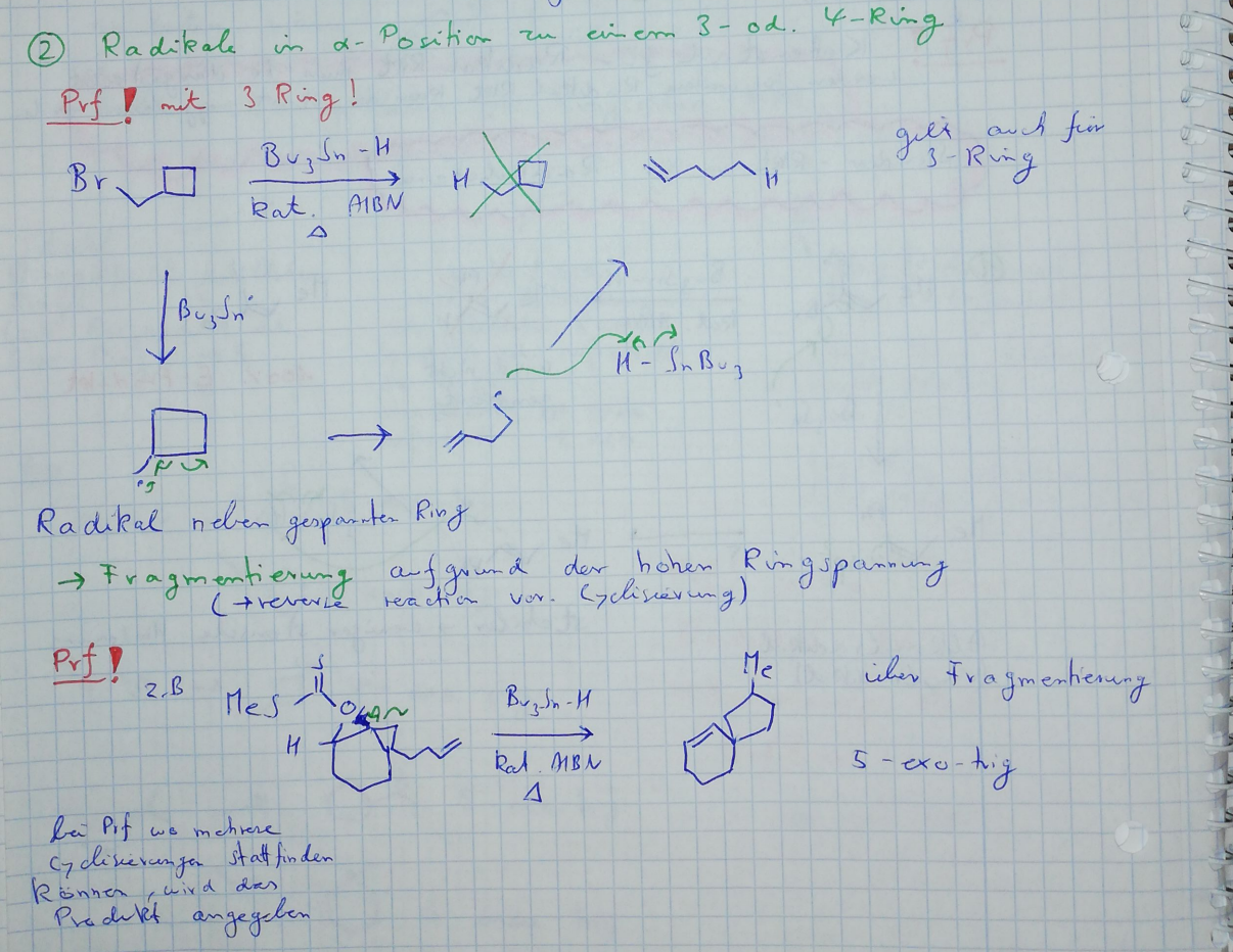 Radikale in alpha Position in einem 3 oder 4 Ring