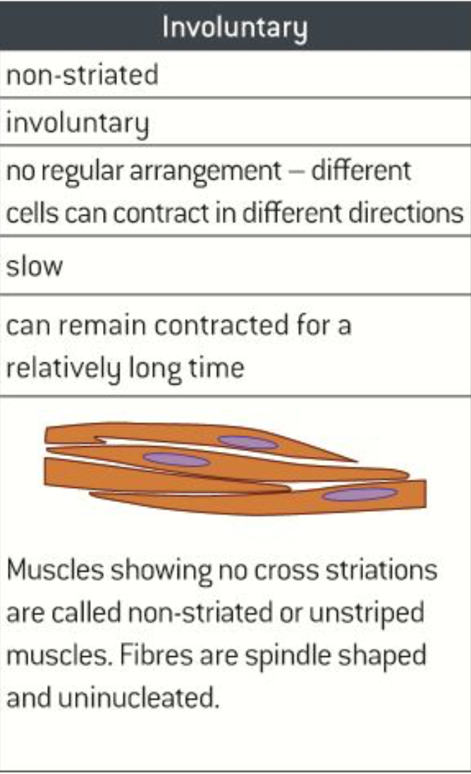 What are the features of involuntary muscles ?