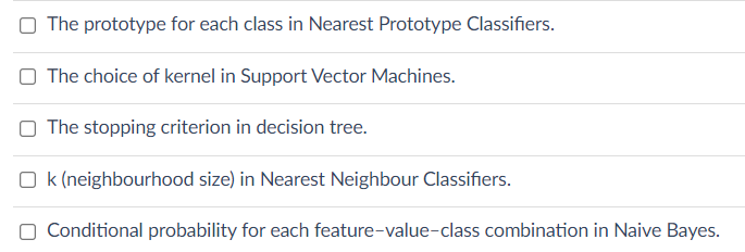 Which of the following are hyperparameters of the associated approach (select all hyperparameters)?