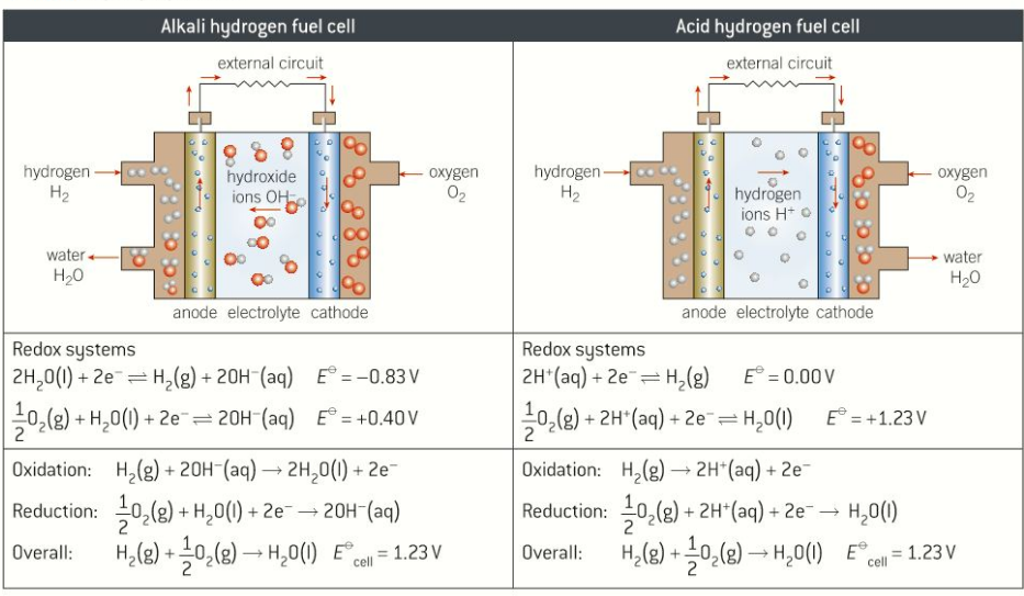 Acid and alkali hydrogen/oxygen fuel cells
