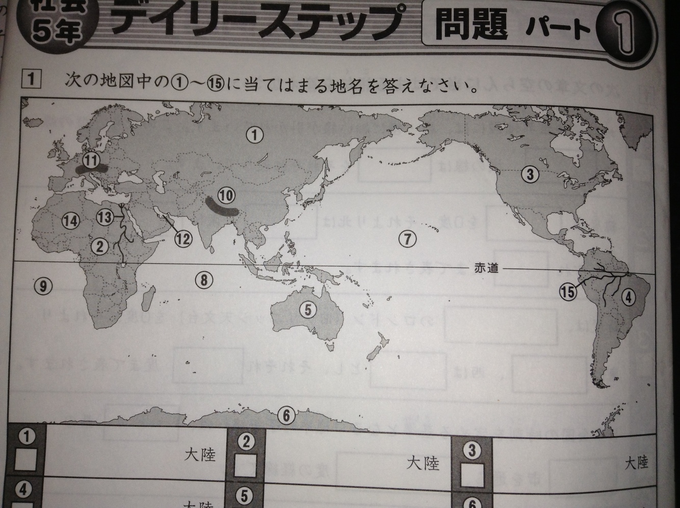 次の地図中の⑤に当てはまる地名を答えなさい。