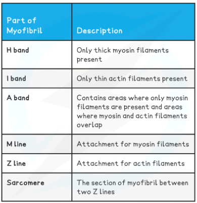 Myofibril Structure Table