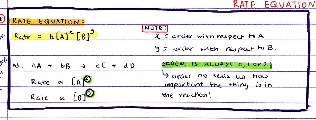 Order of reaction = The power to which the concentration of a reactant is raised to in the rate equation