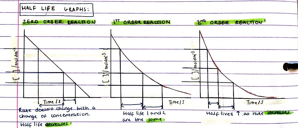 Half life = The time taken for the concentration of a reactant to decrease by half