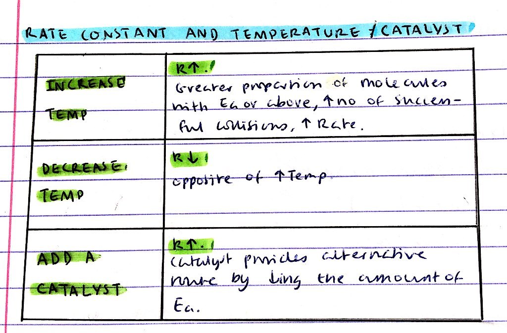 Rate of reaction = The change in concentration of a reactant/ product in a given time