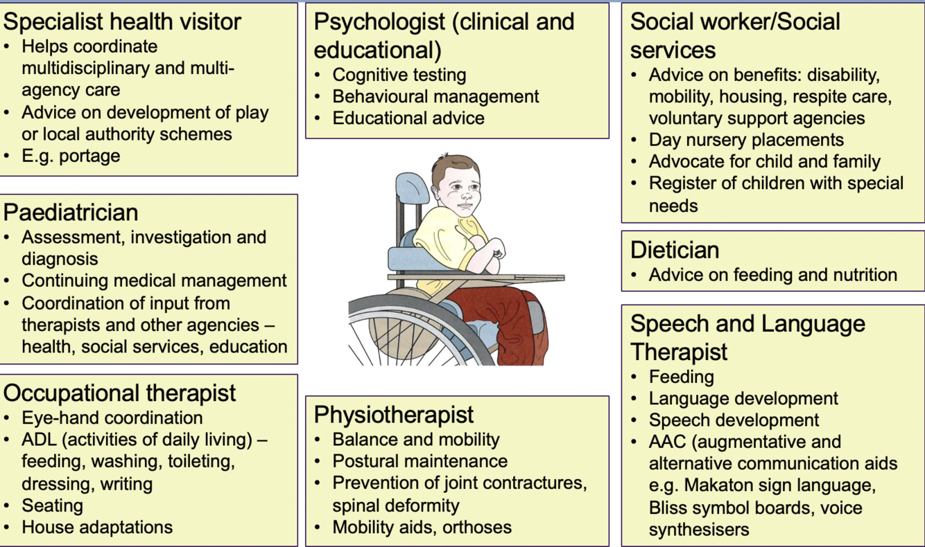 learning difficulties, epilepsy, visual impairment, hearing loss, feeding difficulties, poor growth, and respiratory problems.
