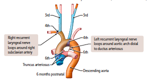 Derivatives of the aortic arches (1, 2, 3, 4, 6)