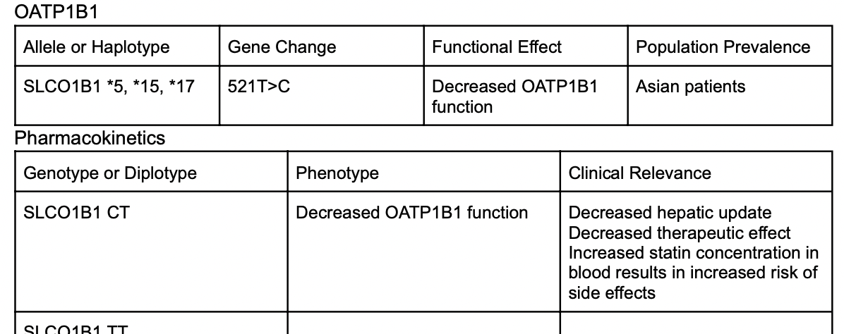 ● Guidelines exist for prescribing statins based on SLCO1B1 genotype