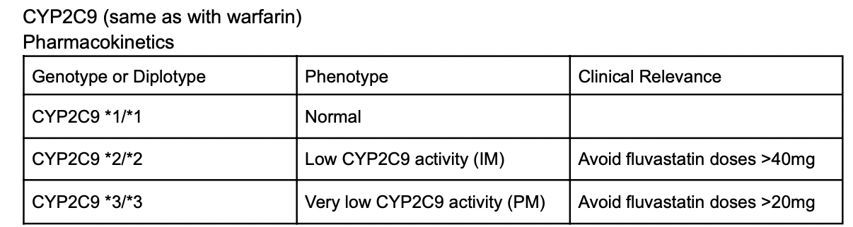 ○ CYP2C9 - metabolizes most statins