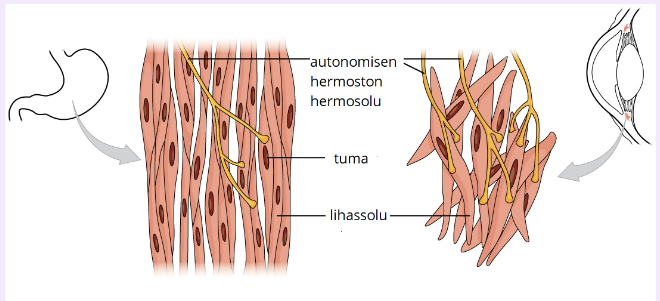 Ruuansulatuskanavan, kohdun, virtsarakon sekä valtimoiden ja laskimoiden seinämässä