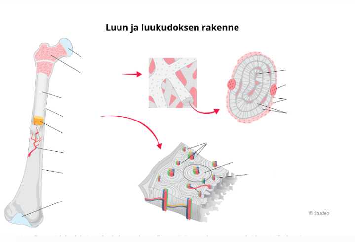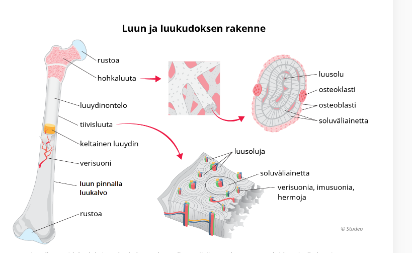 Koostuu erilaisista luusoluista ja kalsiumfosfaattia sekä kollageenia ja kalsiumia sisältävästä kovasta soluväliaineesta