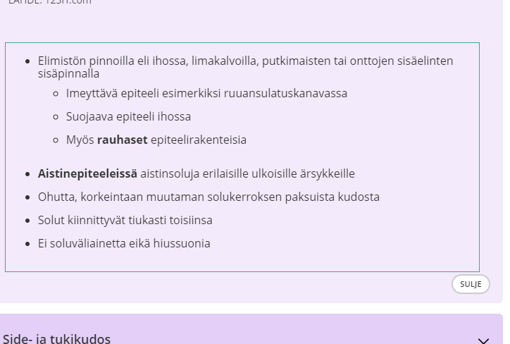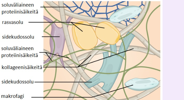 Löyhää sidekudosta esimerkiksi ihossa ja verisuonten ympärillä