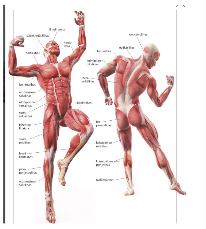 Tehtävät: Poikkijuovaiset lihakset vastaavat tahdonalaisesta liikkeestä ja liikkumisesta. Ne kiinnittyvät luuhun jänteiden avulla ja toimivat yhteistyössä hermoston kanssa tuottaen liikettä ja voimaa kehon eri osiin. Skelettilihakset myös ylläpitävät kehon asentoa ja tukevat luurankoa.