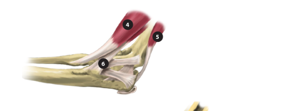 Selitä, miten rakenteet 4, 5 ja 7 osallistuvat käden koukistamiseen.
