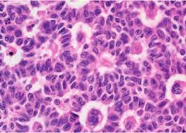 Granulosa cells arranged haphazardly around collections of eosinophilic fluid, resembling primordial follicles
