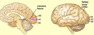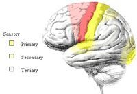 Tertiary (V3)- various areas, largest single area is in posterior parietal cortex